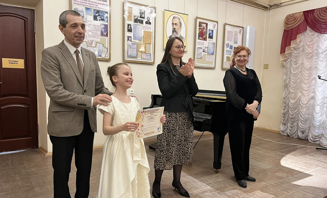В программе встречи с концертом выступили победители конкурса: Хоменко Диана, преподаватель Ю. Свистун ДШИ им. Г.Ф. Пономаренко г. Краснодар, и Топилина Полина, преподаватель О. Масич, ДШИ № 2 г. Краснодар.